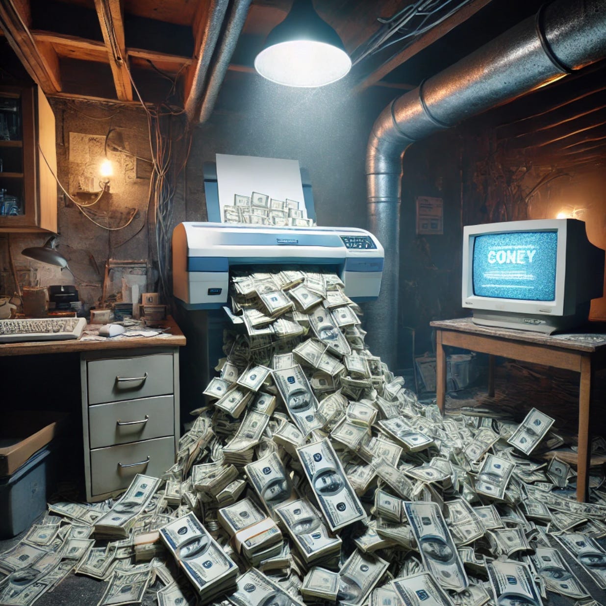 Setting up an actual printer to print money in your basement is a NO-NO.